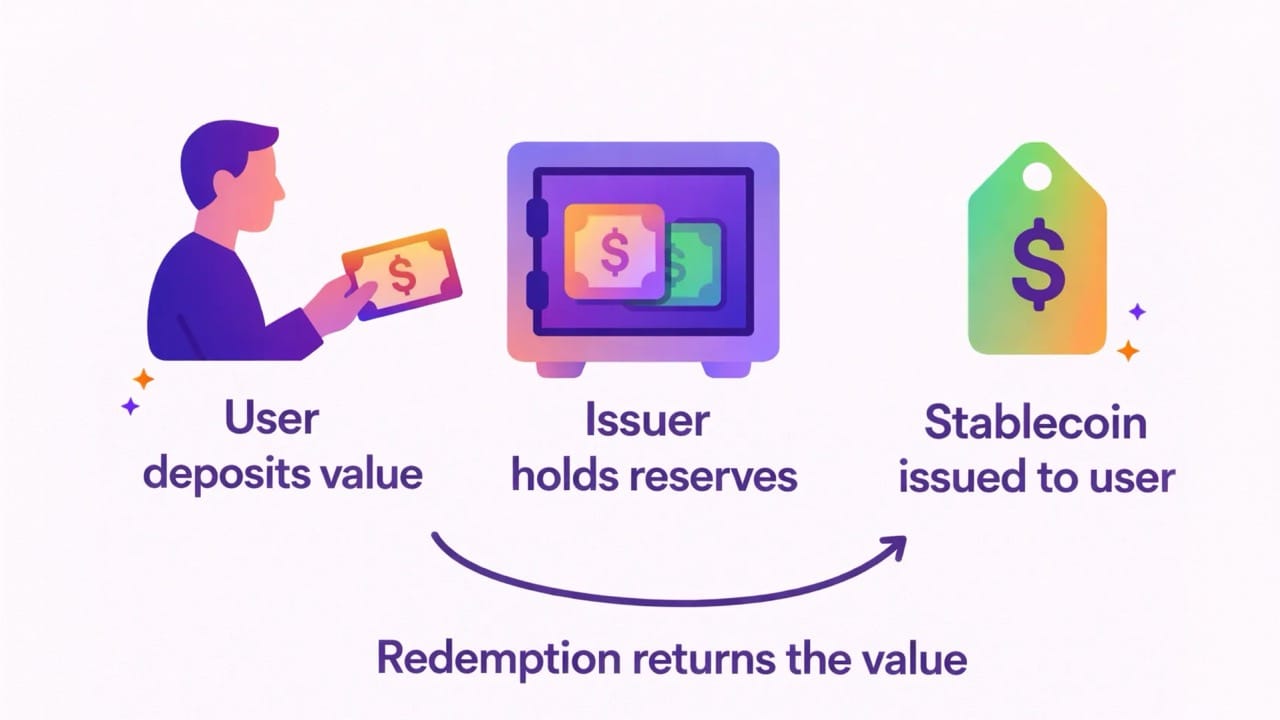 Fiat-backed stablecoins work a bit like a coat-check ticket: you hand something in, and you receive a claim you can return later.