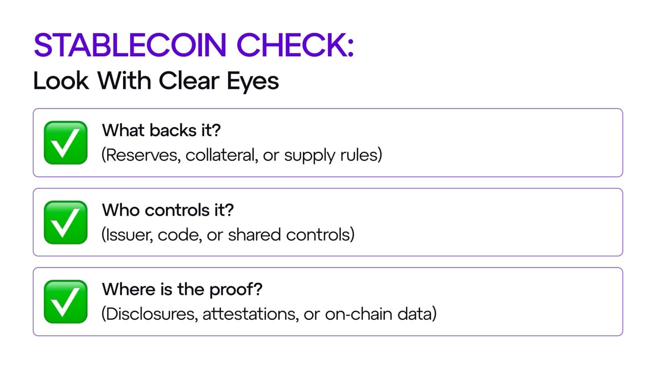 - A simple way to look at any stablecoin and understand what questions to ask before using it