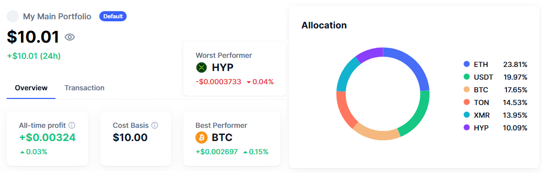The next level is monitoring your personal portfolio. It’s important to understand not just your current balance, but also how it changes over time: how much you invested, how your portfolio value evolved, what share each asset represents, and whether you’re in profit or loss. Without this, it’s impossible to manage risk or make informed decisions.