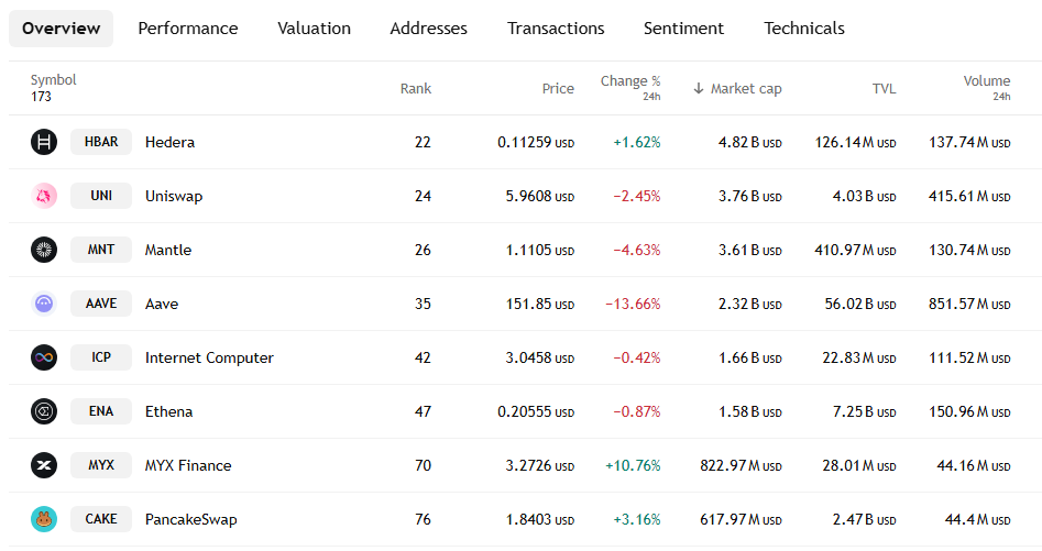 To assess the DeFi market as a whole, DeFiLlama aggregates total value locked (TVL) across protocols, blockchains, and sectors. This helps identify where liquidity is actually concentrated and which ecosystems are growing or declining.