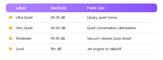 - Noise level (Neighbor Rage Level) — because mining can feel like living next to a jet engine