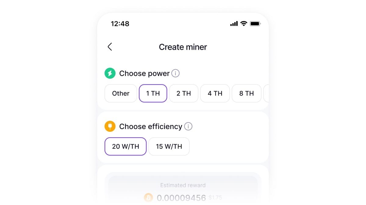 - Select your miner’s power (TH/s) and energy efficiency (W/TH)