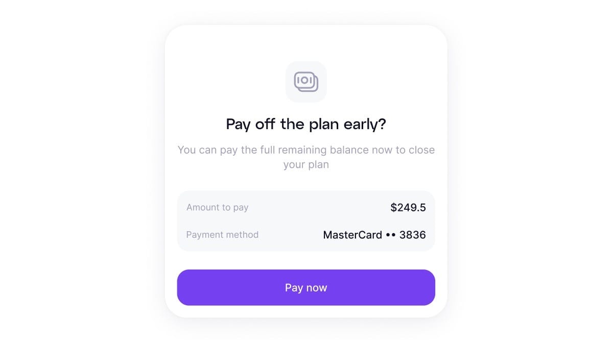 - Pay the full remaining balance in one go with “Pay all now” button: