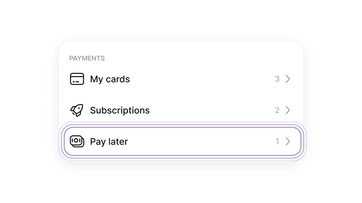You can find all your active and past MNPL plans in the "Profile" → "Pay later" section: